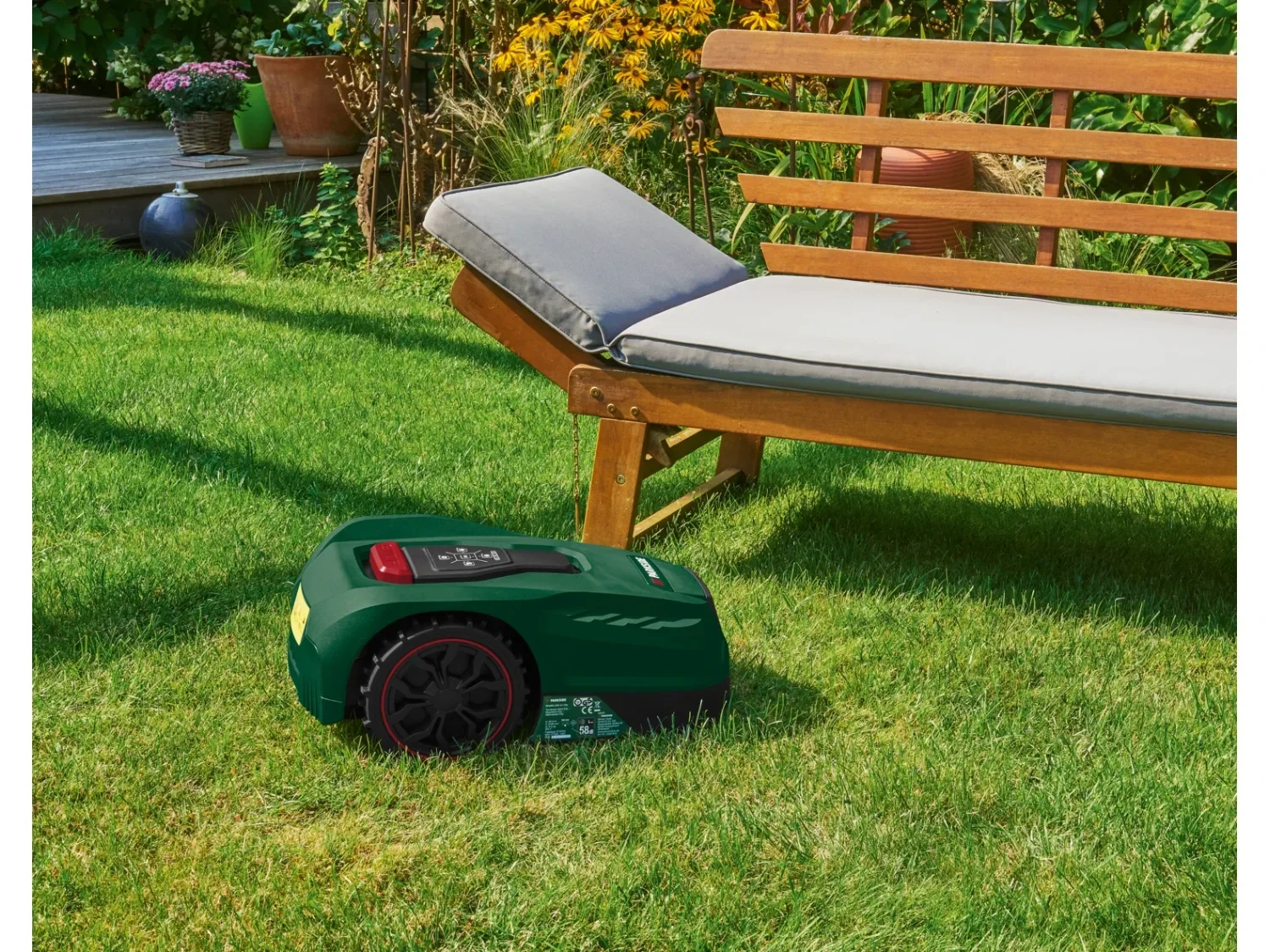 - Capacità di superficie: 250 m², altezza di taglio: 25 / 35 / 45 mm, Batteria agli ioni di litio: 20 V (2 Ah), Sensore pioggia integrato